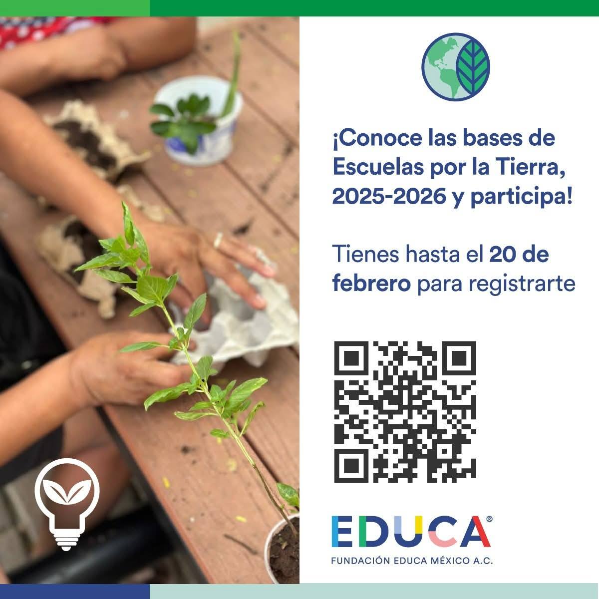 General Convocatoria Escuelas por la Tierra México 2025-2026 9 enero, 2026 por TecNM Campus P'urhépecha La Fundación EDUCA México A.C. invita a todas las instituciones educativas, públicas y privadas, desde nivel preescolar hasta superior, a participar en el Concurso Escuelas por la Tierra, que busca reconocer prácticas destacadas de gestión ambiental escolar. El objetivo es impulsar que las escuelas se conviertan en comunidades sostenibles a través de la educación ambiental […] Lea más »