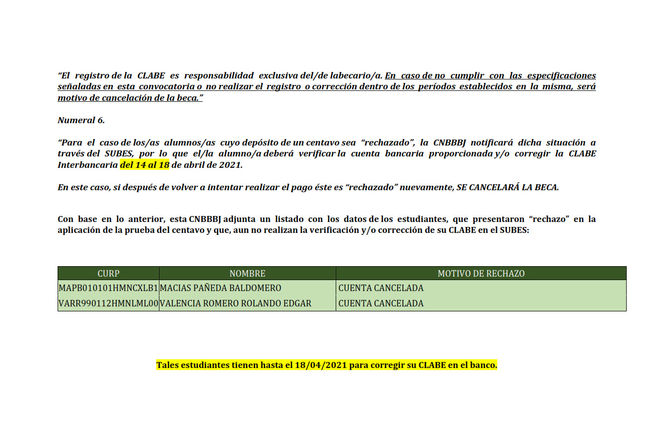General Corrección CLABE beca SUBES 14 abril, 2021 / 21 abril, 2021 por TecNM Campus P'urhépecha Lea más »